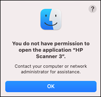 HP Laser MFP 137fnw - You do not have permission to open the application 'HP Scanner 3' error (macOS)